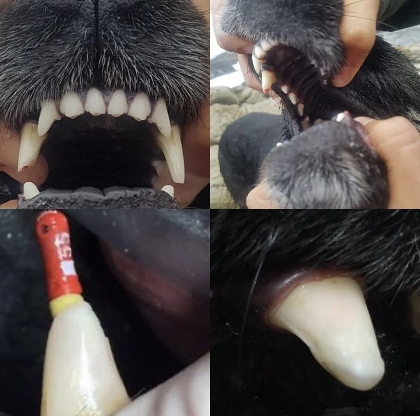 Luna se fracturo un canino, el cual es un diente muy importante por lo cual hay que tratar de mantenerlo, realizamos un endoncia y hoy luna come y juega feliz!